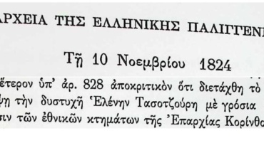 Πρακτικά τακτικών συνεδριάσεων Βουλευτικού Σώματος Γ’Περιόδου-10 Νοεμβρίου 1824-Περίθαλψη Ελένης Τασοτζούρη από εκποίηση εθνικών κτημάτων της Επαρχίας Κορίνθου.