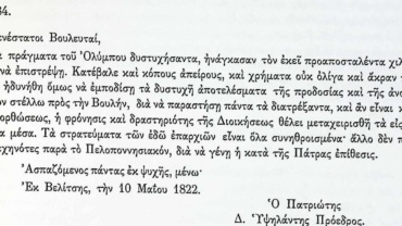 Στην αναφορά της 5ης Μαΐου 1822, ο Δημήτριος Υψηλάντης ενημερώνει πως τον κάλεσαν να επιστρέψει στην Κόρινθο αλλά περιμένει διαταγή.