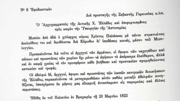 «Λυτά Έγγραφα» Α’ & Β’ Βουλευτικής Περιόδου-Γερουσία Δυτικής Χέρσου Ελλάδας-Εντολή ελεύθερης μετακίνησης στον Χρ. Παλάσκα.